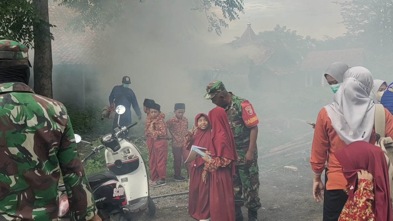 Omben– Serka Zainudin, Babinsa dari Koramil 0828-03/Omben, bersama anggota Polsek dan Puskesmas Jranguan, melaksanakan kegiatan fogging untuk membasmi nyamuk demam berdarah di SDN Karang Nangger 2, Kecamatan Omben. Kegiatan ini dilaksanakan guna mengantisipasi penyebaran penyakit yang ditularkan melalui gigitan nyamuk, seperti demam berdarah, yang berpotensi mengancam kesehatan para siswa dan masyarakat sekitar.