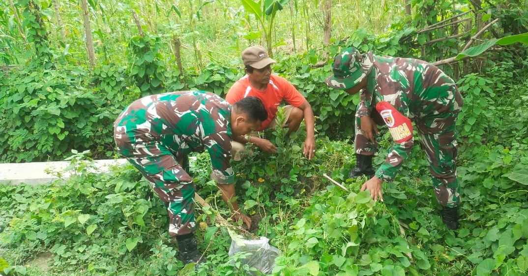Babinsa Koramil Sreseh Bantu Warga Tanam Pohon Sukun