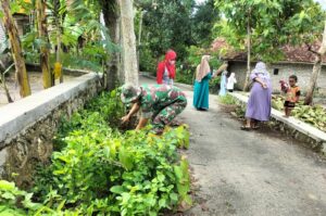 Omben – Bertempat di Desa Karang Gayam, Kecamatan Omben, Kabupaten Sampang, Serda Nasirudin, Babinsa Koramil 0828/03 Omben, menggelar kegiatan kerja bakti bersama masyarakat setempat untuk membersihkan parit selokan yang tersumbat. Kegiatan ini dilakukan untuk mengantisipasi terjadinya banjir saat musim hujan serta menjaga kebersihan lingkungan agar tetap sehat dan nyaman.