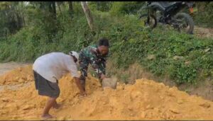 “Sebagai bagian dari TNI, kami siap membantu masyarakat dalam pembangunan dan perbaikan infrastruktur desa. Kegiatan ini merupakan bentuk nyata kepedulian kami terhadap warga di wilayah binaan,” ujar Serda Khamid.