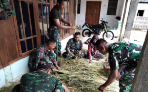 Tambelangan – Bertempat di Lahan Terpadu Poktan Militani 4, Dusun Mambulu, Desa Mambulu Barat, Kecamatan Tambelangan, Kabupaten Sampang, Batituud Koramil 0828/11 Tambelangan, Pelda Wardiyanto, bersama 4 orang anggota dan PPL Pertanian setempat, melaksanakan kegiatan pengubinan tanaman padi.