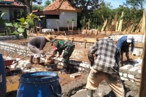 Sampang – Dalam rangka mendukung program ketahanan sosial dan mempererat hubungan antara TNI dan masyarakat, Babinsa Koramil 0828/08 Sokobanah, Serda Agus Tiyono, ikut terlibat aktif dalam kegiatan pembangunan rumah untuk warga di Desa Bite Timur, Kecamatan Sokobanah, Kabupaten Sampang.