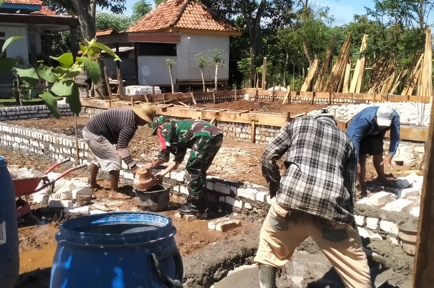 Serda Agus Tiyono turun langsung untuk membantu warga setempat dalam membangun rumah milik salah satu keluarga kurang mampu di desa tersebut. Kegiatan ini merupakan bentuk nyata kepedulian TNI dalam mendukung program Pemerintah Daerah dan meningkatkan kesejahteraan masyarakat.