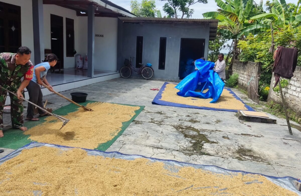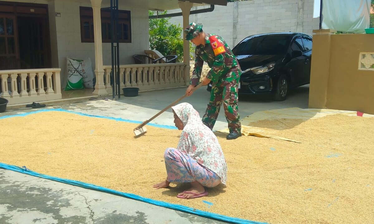 Babinsa Koramil Sampang Bantu Petani Penjemuran Padi di