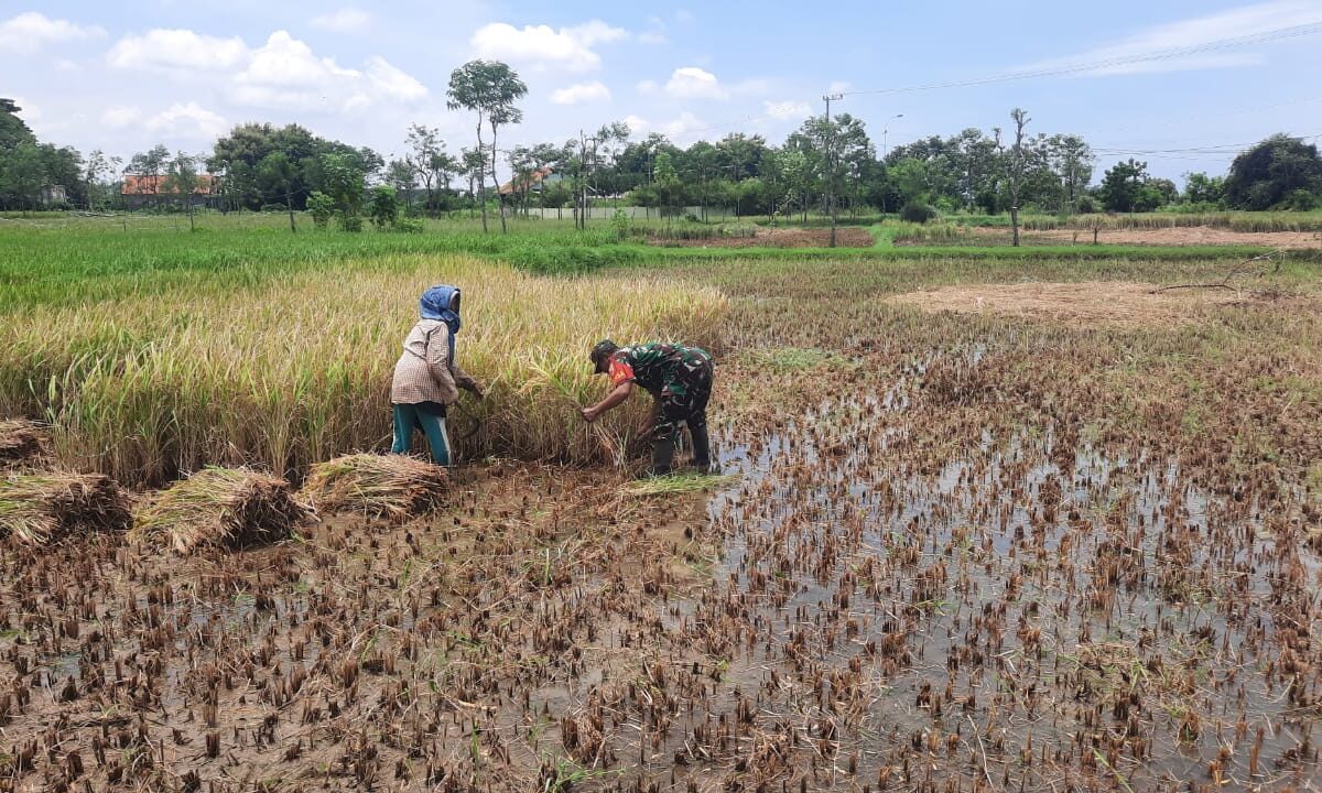 Babinsa Serka Halik Terjun Langsung Bantu Panen Padi,