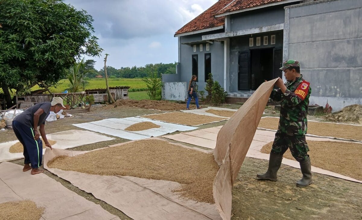 Babinsa Koramil Omben Bantu Petani Penjemuran Padi di