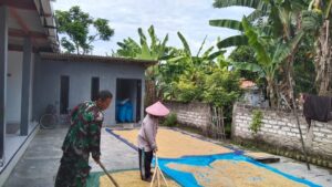 Kegiatan tersebut merupakan bagian dari rutinitas petani di desa tersebut setelah masa panen. Serda Agung menyempatkan diri untuk bergotong royong bersama warga setempat dalam menjemur padi yang telah dipanen, guna memastikan padi tersebut siap untuk proses penggilingan.