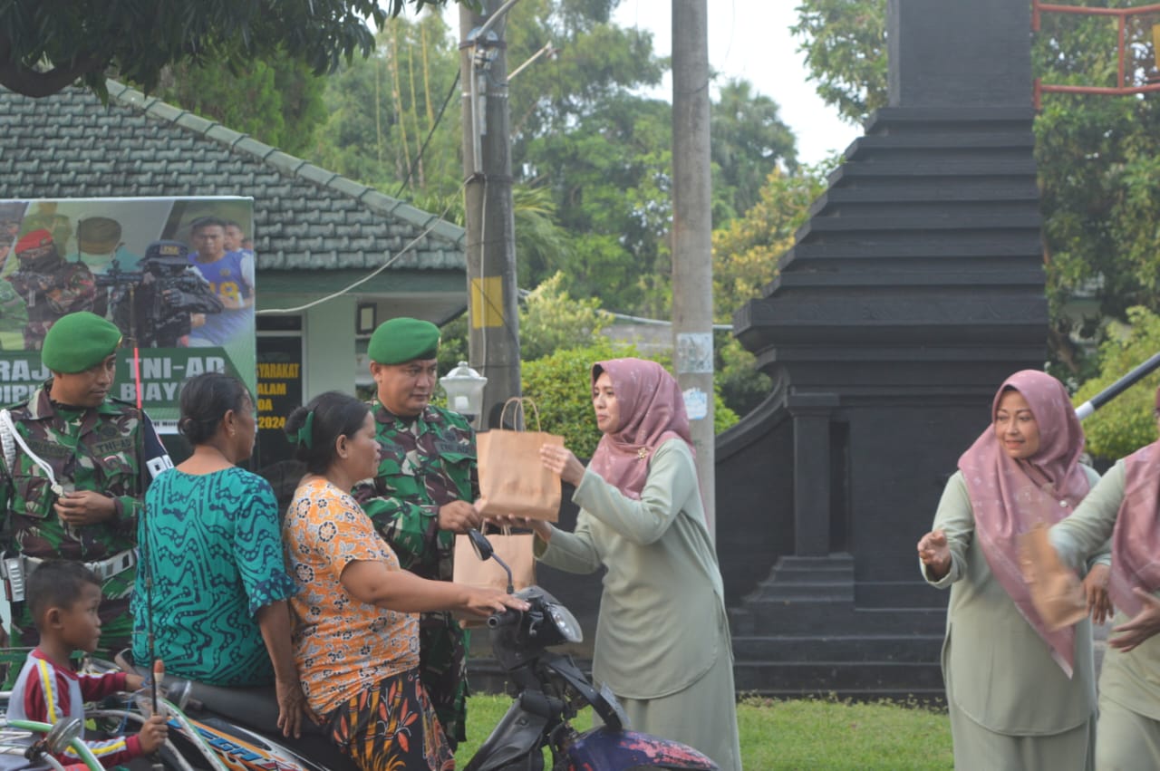 Sampang – Personil Kodim 0828/Sampang dan pengurus Persit KCK Cab. XLVII Dim 0828 Sampang menyelenggarakan kegiatan bagi-bagi takjil di depan Makodim 0828/Sampang Jl. Diponegoro Kelurahan Banyuanyar Sampang untuk masyarakat yang melintas dalam rangka menyambut buka puasa Ramadan.