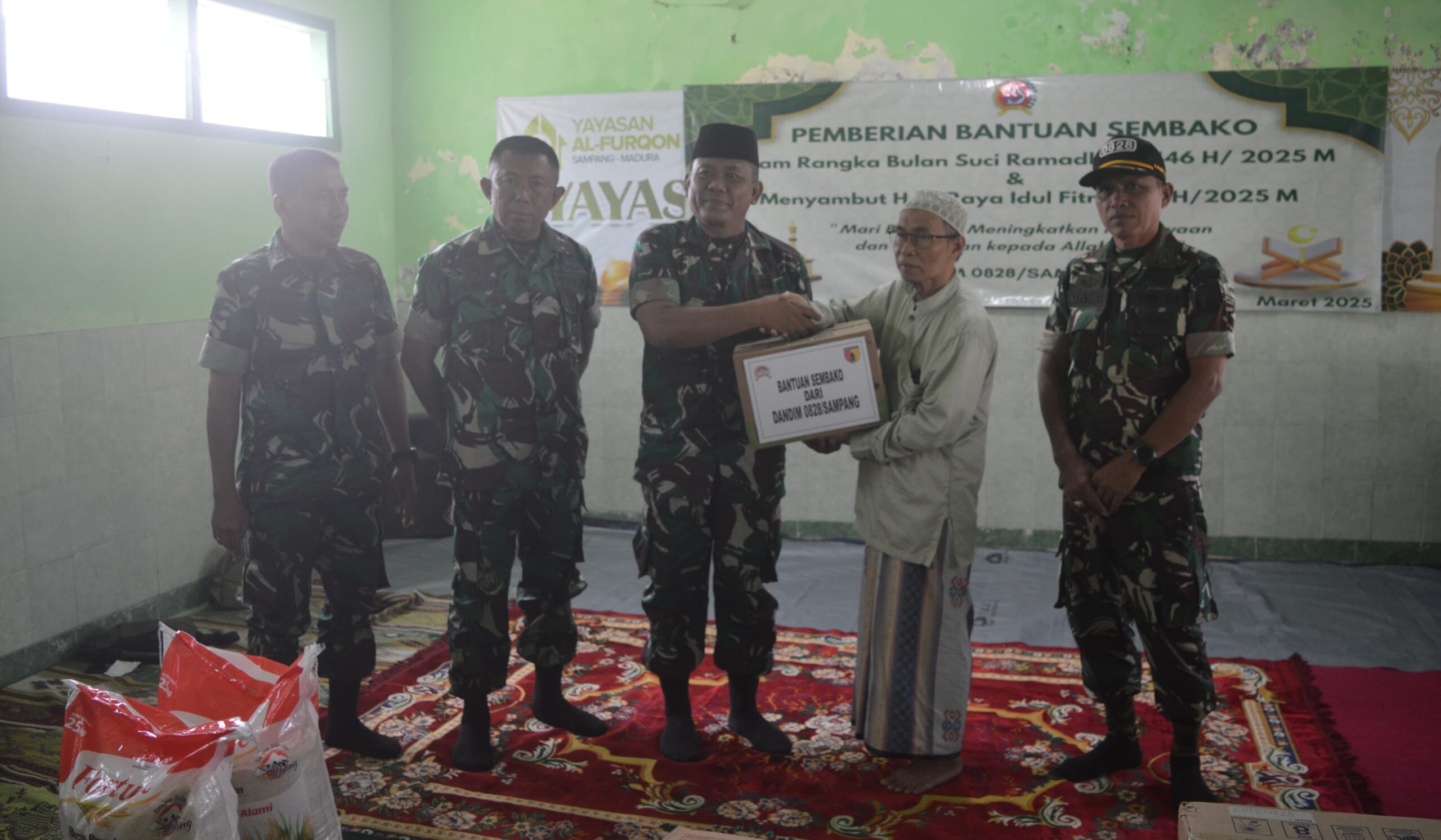 Sampang – Berbagi kebahagiaan bulan suci Ramadhan dan menjelang perayaan Idul Fitri, 2025 M Kodim 0828/Sampang memberikan bantuan sembako kepada Yayasan Yatim Piatu Al Furqon Sampang, Bantuan ini merupakan bagian dari kegiatan sosial yang dilakukan oleh Kodim Sampang untuk meringankan beban saudara-saudara kita yang membutuhkan, khususnya anak-anak yatim piatu yang berada di bawah asuhan yayasan tersebut.