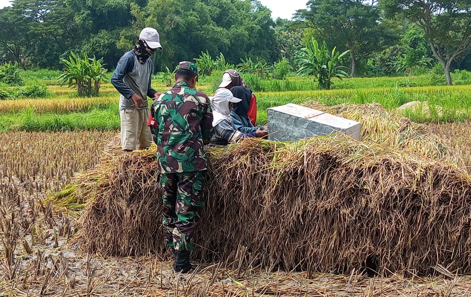 Sebagai bagian dari upaya TNI untuk mendukung ketahanan pangan nasional, Sertu Agus Sinarno bersama masyarakat setempat berkolaborasi memanen hasil pertanian padi yang telah mencapai masa panen. Dengan bantuan Babinsa, para petani merasa lebih terbantu dalam mempercepat proses panen yang akan segera dilanjutkan dengan distribusi hasil pertanian.