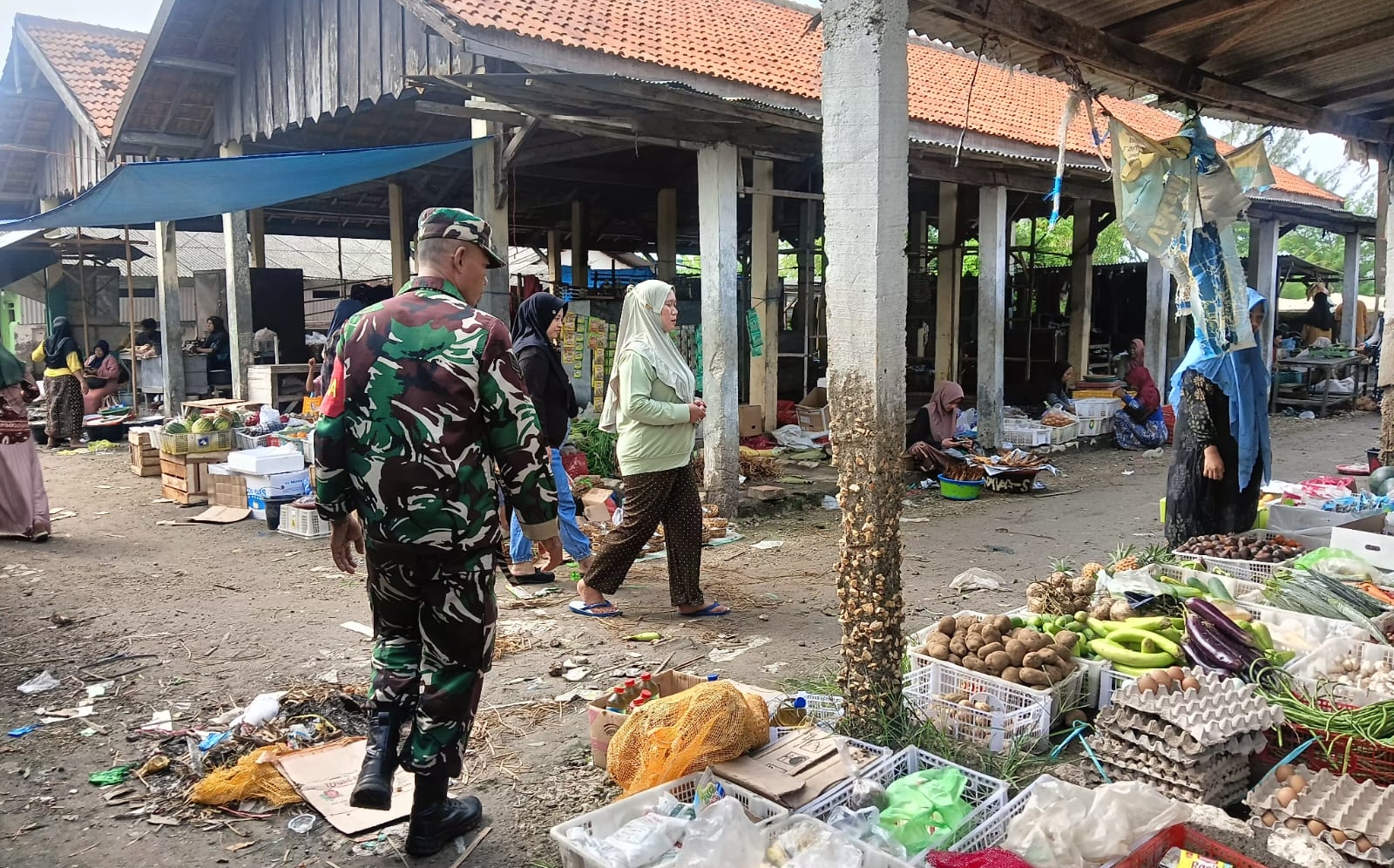 Dalam kegiatan tersebut, Serka Dwi Setyo menyapa para pedagang dan pengunjung pasar, menyampaikan pesan penting tentang pentingnya menjaga kebersihan lingkungan pasar serta meningkatkan kewaspadaan terhadap potensi gangguan keamanan. Ia juga mengajak masyarakat untuk tidak membuang sampah sembarangan, serta menjaga ketertiban bersama demi menciptakan pasar yang nyaman, sehat, dan aman.
