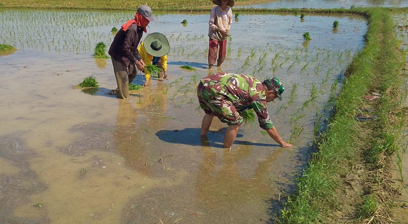 “Kami hadir tidak hanya sebagai aparat teritorial, tetapi juga sebagai mitra petani dalam menciptakan swasembada pangan. Dengan turun langsung ke sawah, kita bangun kebersamaan dan semangat gotong royong,” ujar Serda Agus Tiyono di sela kegiatan.