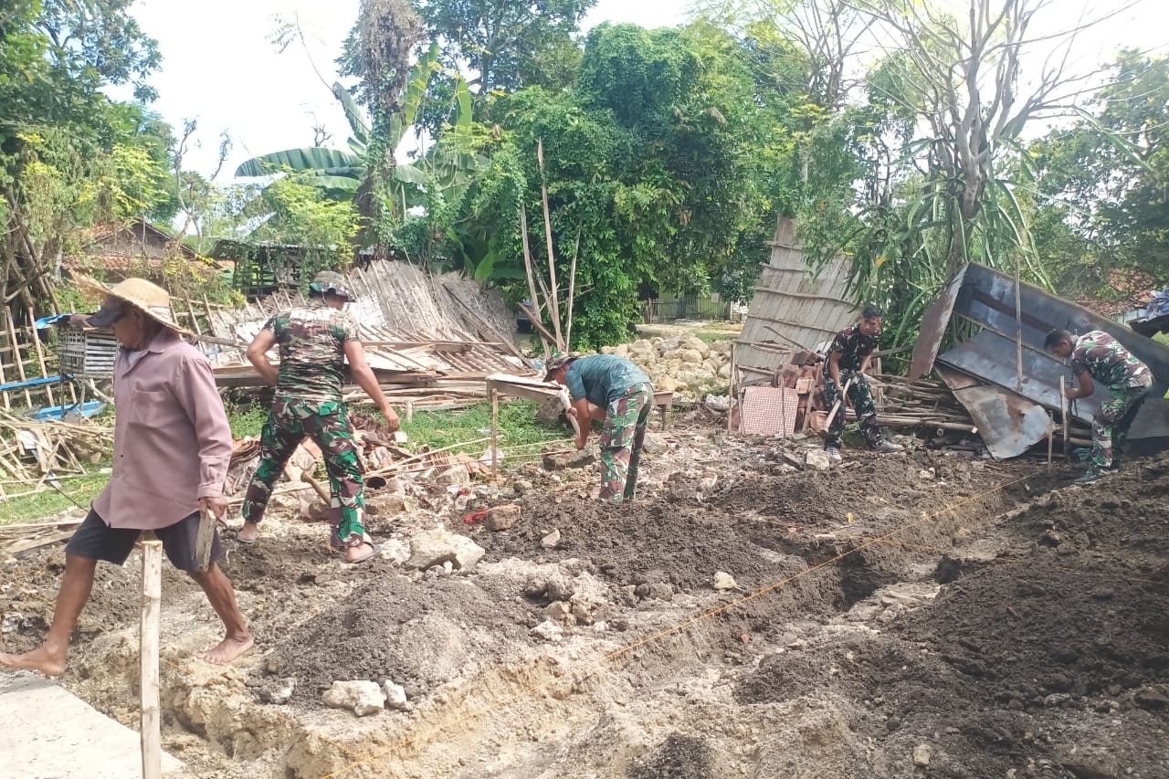 Sampang, 19 April 2025 – Satgas Pra TNI Manunggal Membangun Desa (TMMD) ke-124 Kodim 0828/Sampang mulai melakukan penggalian pondasi Rumah Tidak Layak Huni (Rutilahu) milik Ibu Umrina, warga Dusun Kramat, Desa Batu Karang, Kecamatan Camplong, Kabupaten Sampang.
