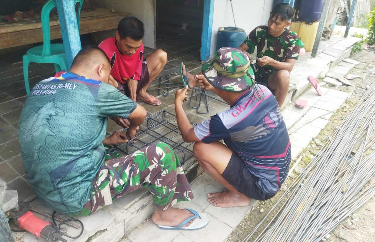 Teguh Membangun Harapan: Satgas Pra TMMD Kodim Sampang Kerjakan Pengeraman Besi Cor di Rumah Ibu Umrina