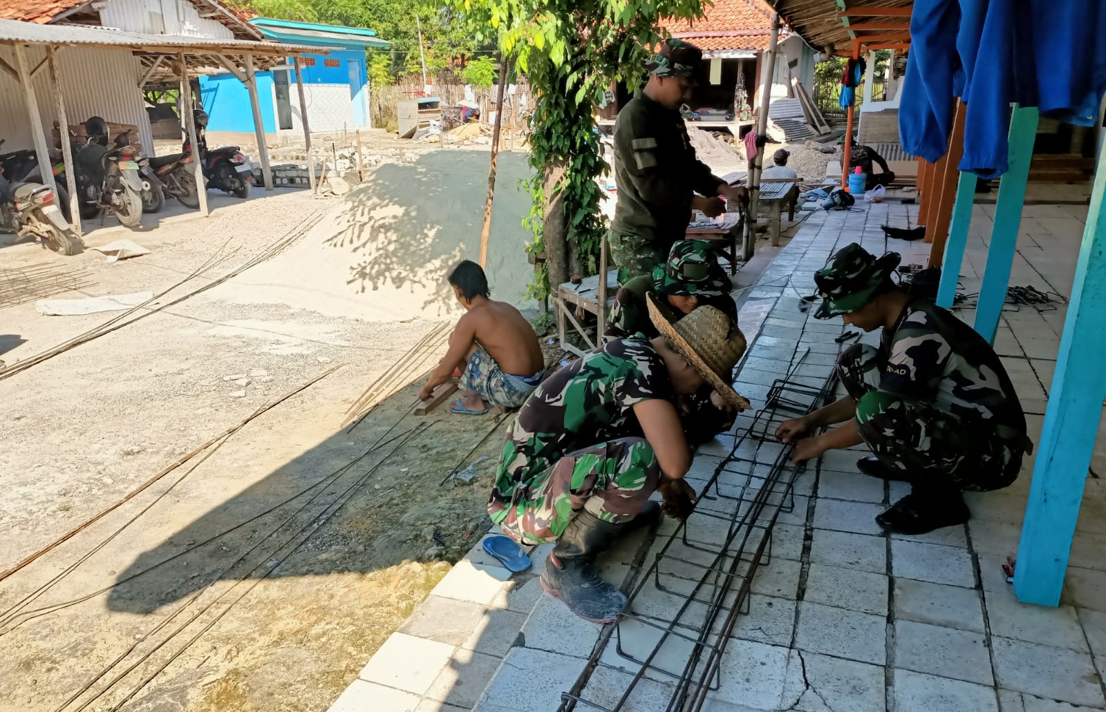 Desa Batu Karang, Kec. Camplong, Sampang – Semangat pengabdian terus menyala di tengah pelaksanaan kegiatan Pra-TMMD ke-124 Kodim 0828/Sampang. Di bawah koordinasi Peltu Karmuji, Satgas terus menunjukkan dedikasi tinggi dalam tahap pembangunan Rumah Tidak Layak Huni (Rutilahu) milik Bapak Sahruji.