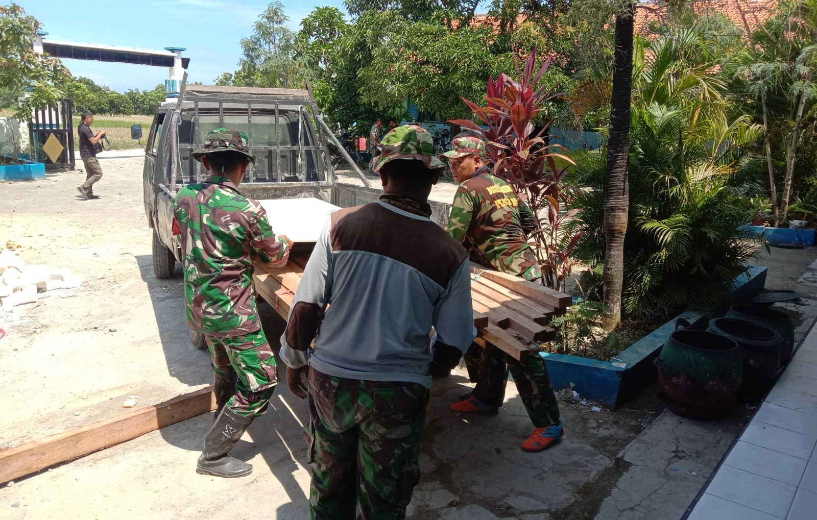 Pada tahap ini, Satgas menerima pengiriman bahan material berupa kayu papan dan kasebot sebagai bagian dari kebutuhan utama pembangunan fisik. Material tersebut akan digunakan untuk konstruksi awal bangunan UKS yang menjadi salah satu sasaran fisik dalam program TMMD tahun ini.