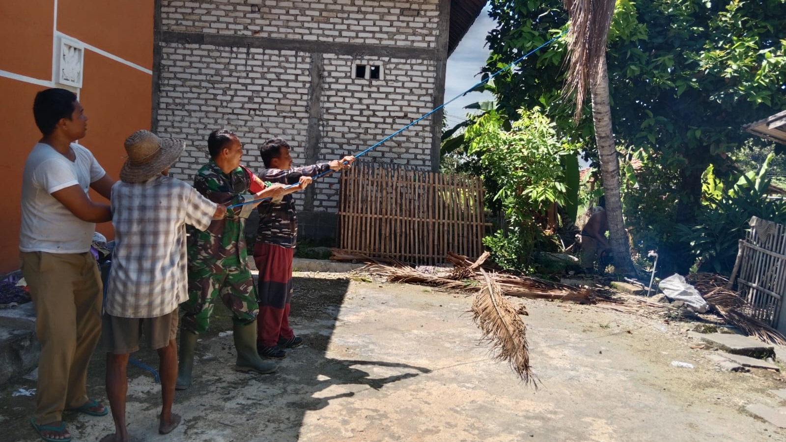 Babinsa Koramil 0828/02 Camplong Bantu Warga Tebang Pohon Kelapa di Desa Rabesan