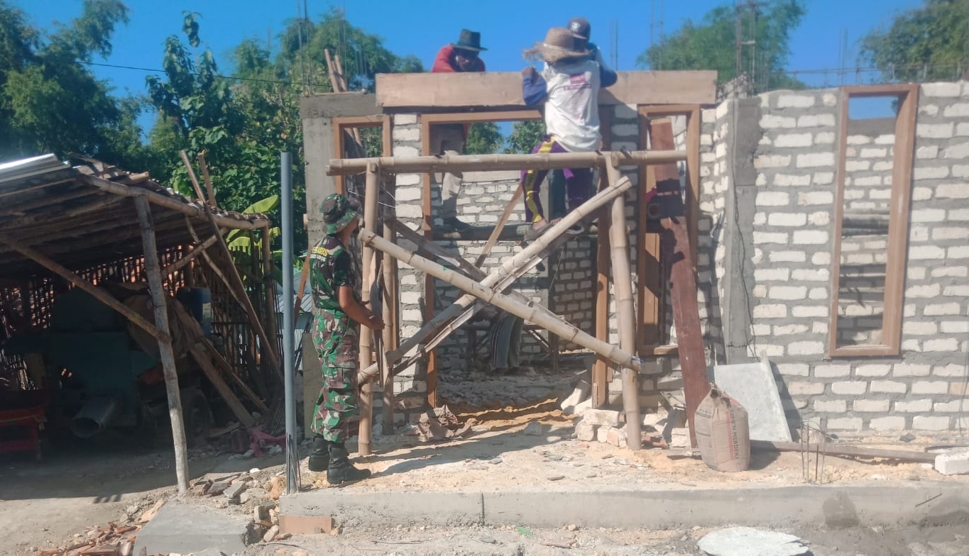 Camplong — 1 Mei 2025 .Semangat gotong royong terus bergema dalam kegiatan Pra-TMMD ke-124 Kodim 0828/Sampang yang kini memasuki tahap pembangunan fisik di sasaran Rumah Tidak Layak Huni (Rutilahu) milik Ibu Harifah, warga Desa Batu Karang, Kecamatan Camplong.
