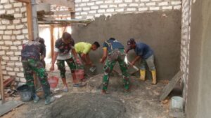 Semangat Kebersamaan Menyatu di Dinding Harapan: Satgas TMMD dan Warga Plester Rutilahu di Batu Karang