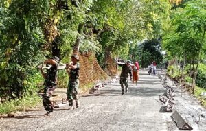 Sampang, 11 Mei 2025 – Semangat gotong royong kembali terpancar dalam program TNI Manunggal Membangun Desa (TMMD) ke-124 yang dilaksanakan Kodim 0828/Sampang. Bertempat di Desa Batu Karang, Kecamatan Camplong, kegiatan pembangunan jalan rabat beton terus berlangsung dengan melibatkan sinergi yang kompak antara Satgas TMMD dan masyarakat setempat.