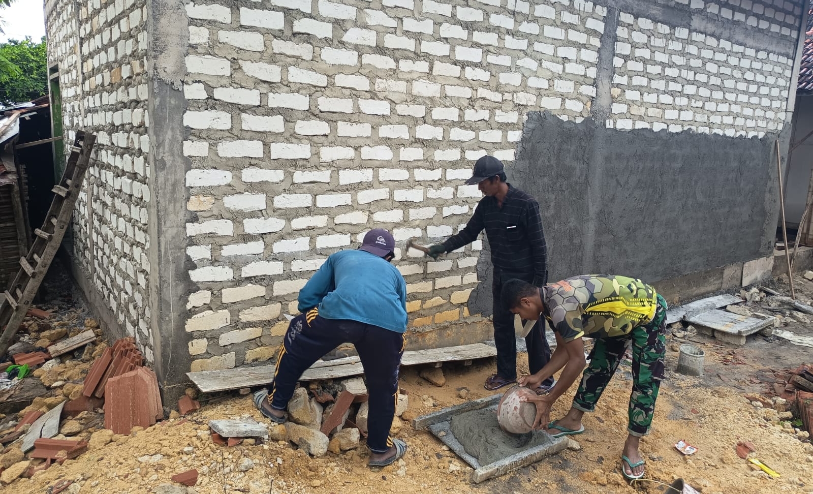 Sentuhan Kasih di Batu Karang: TNI dan Rakyat Bergotong Royong Plester Rumah Umrina