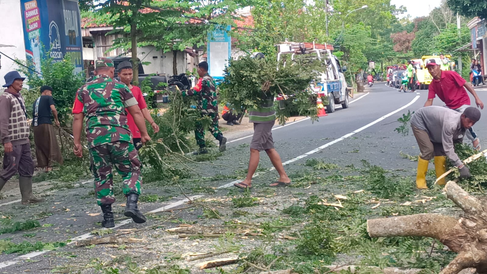 Sigap Membantu: Serma Samsuri Kawal Penebangan Pohon Tumbang di Jalur Utara Kedungdung