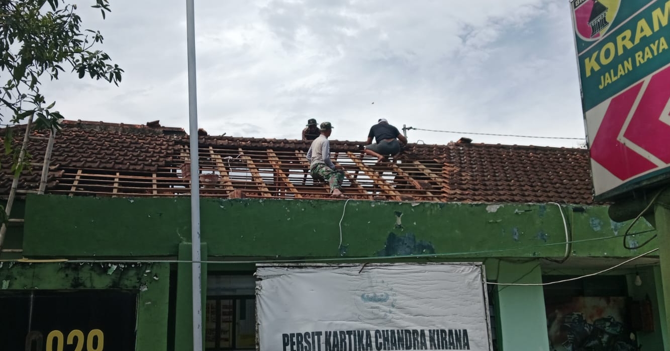 Kedungdung – Dalam semangat gotong royong dan pengabdian terhadap satuan, anggota Koramil 0828/10 Kedungdung yang dipimpin oleh Serma Karnoto melaksanakan kegiatan perehapan atap bangunan Koramil yang berlokasi di Kecamatan Kedungdung, Kabupaten Sampang.