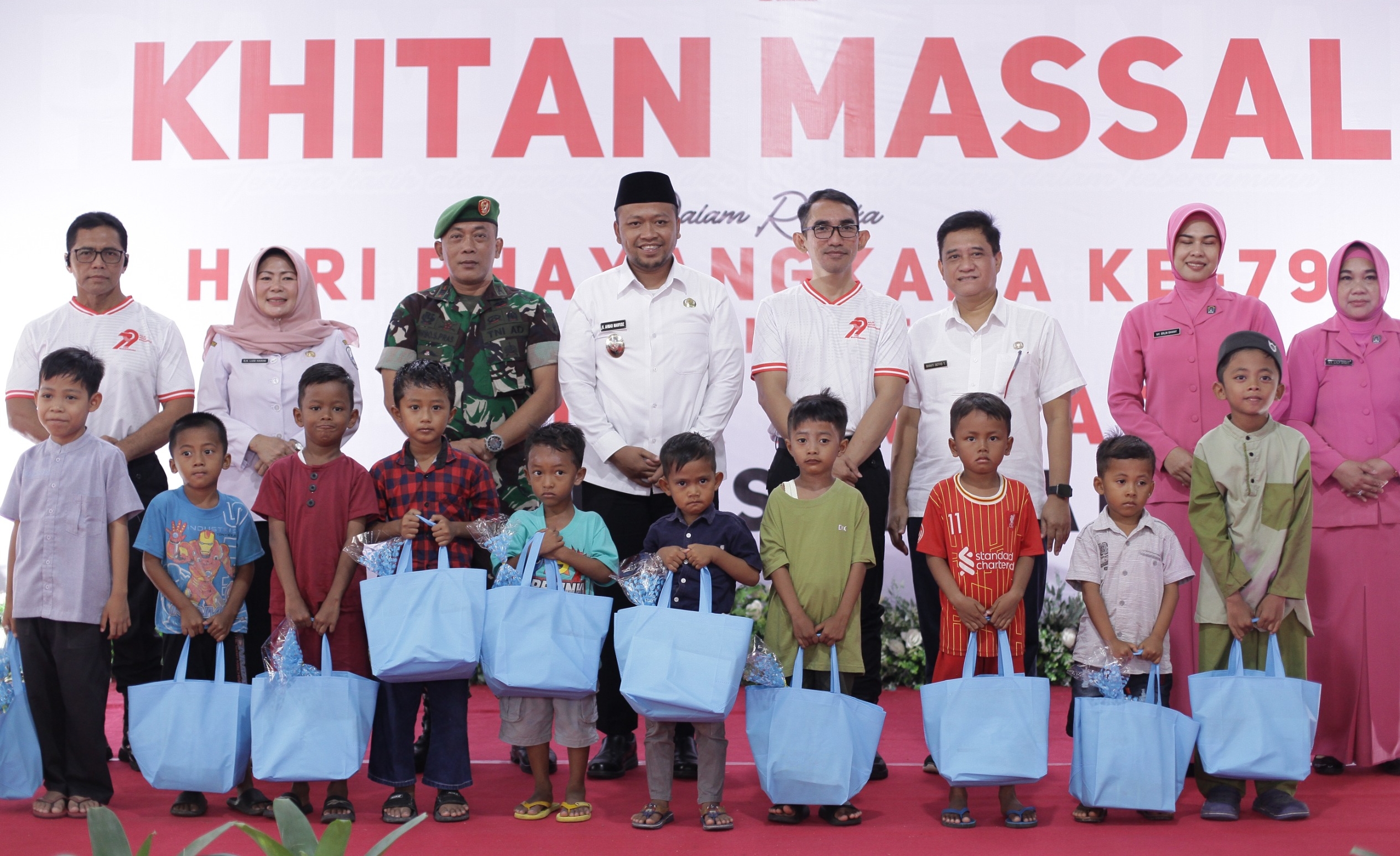 “Mari kita jadikan momentum Hari Bhayangkara ini sebagai ajang mempererat hubungan Polres Sampang dengan stakeholder lainnya dan masyarakat. Sesuai dengan HUT Bhayangkara ke-79 yang mengambil tema Polri Untuk Masyarakat, Polres Sampang akan terus meningkatkan semangat pelayanan Kepolisian yang humanis, profesional dan bermartabat,” akhir sambutan Kapolres Sampang dalam acara khitan massal.