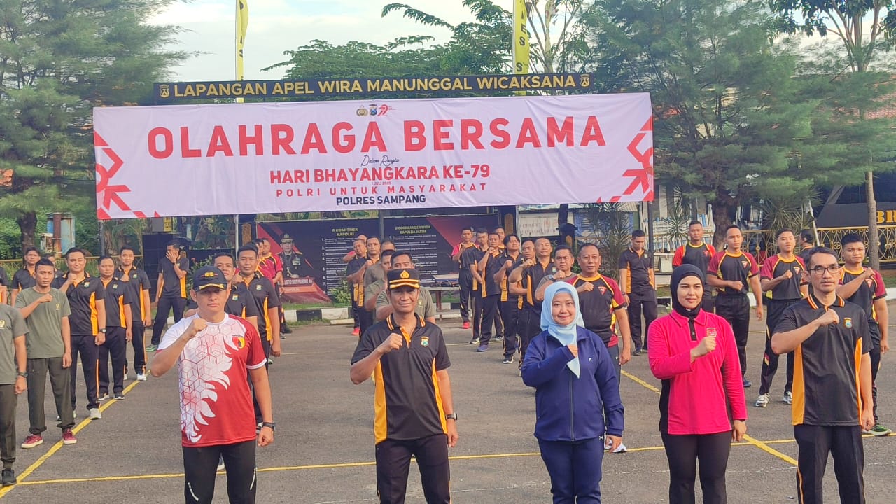 Dalam rangka menyambut Hari Ulang Tahun (HUT) Bhayangkara ke-79, Dandim 0828/Sampang Letkol Czi Dika Catur Yanuar Anwar S.T bersama anggota Kodim 0828/Sampang dan jajaran Polres Sampang melaksanakan kegiatan olahraga bersama yang berlangsung di halaman Mapolres Sampang.