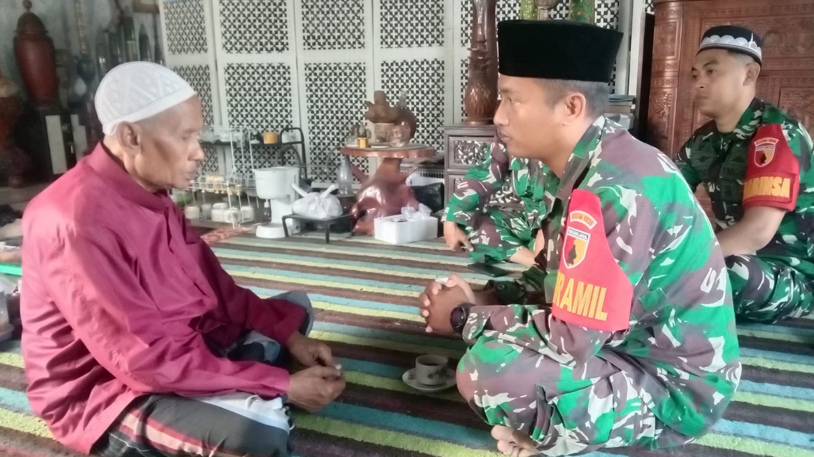 Tambelangan, Sampang – Dalam upaya mempererat sinergi dan menjaga kondusivitas wilayah, Danramil 0828/11 Tambelangan, Letda Inf Ali, bersama beberapa anggota Koramil melaksanakan kegiatan tatap muka dengan tokoh agama di Desa Bringin, Kecamatan Tambelangan, Kabupaten Sampang.