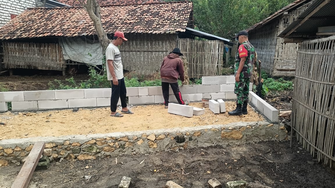 Babinsa Karang Penang Bersama Warga Bangun Jembatan Penghubung