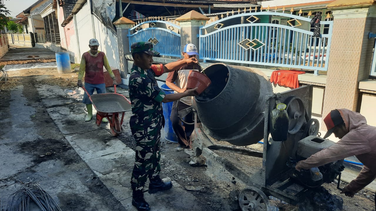 Teguhkan Merakyat, Babinsa Serka Halik Turun Tangan Bantu Warga Cor Jalan di Desa Pangarengan