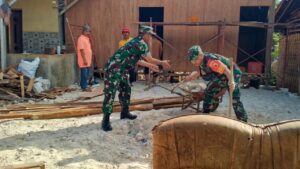 Sampang – Kepedulian terhadap masyarakat kembali ditunjukkan oleh Bintara Pembina Desa (Babinsa) Koramil 0828/08 Sokobanah, Koptu Sugiarto, yang melaksanakan kegiatan pembinaan teritorial (binter) dengan membantu warga di Dusun Rojing, Desa Tamberuh Daya, Kecamatan Sokobanah, Kabupaten Sampang.