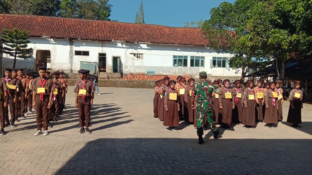 Babinsa Kopda Petrus Latih PBB Siswa Baru SMK