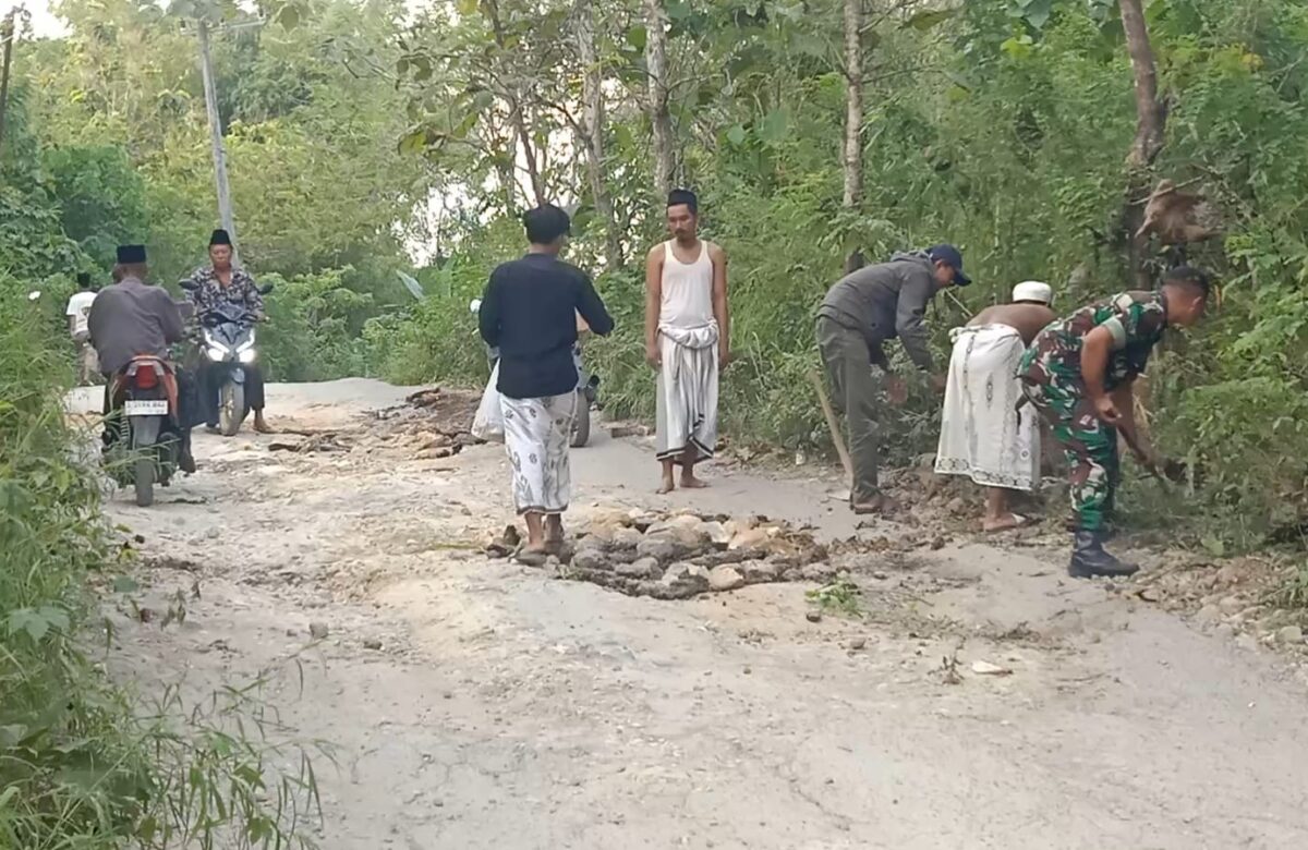 Babinsa Kedungdung Bantu Perbaiki Jalan Desa, Wujud Kepedulian