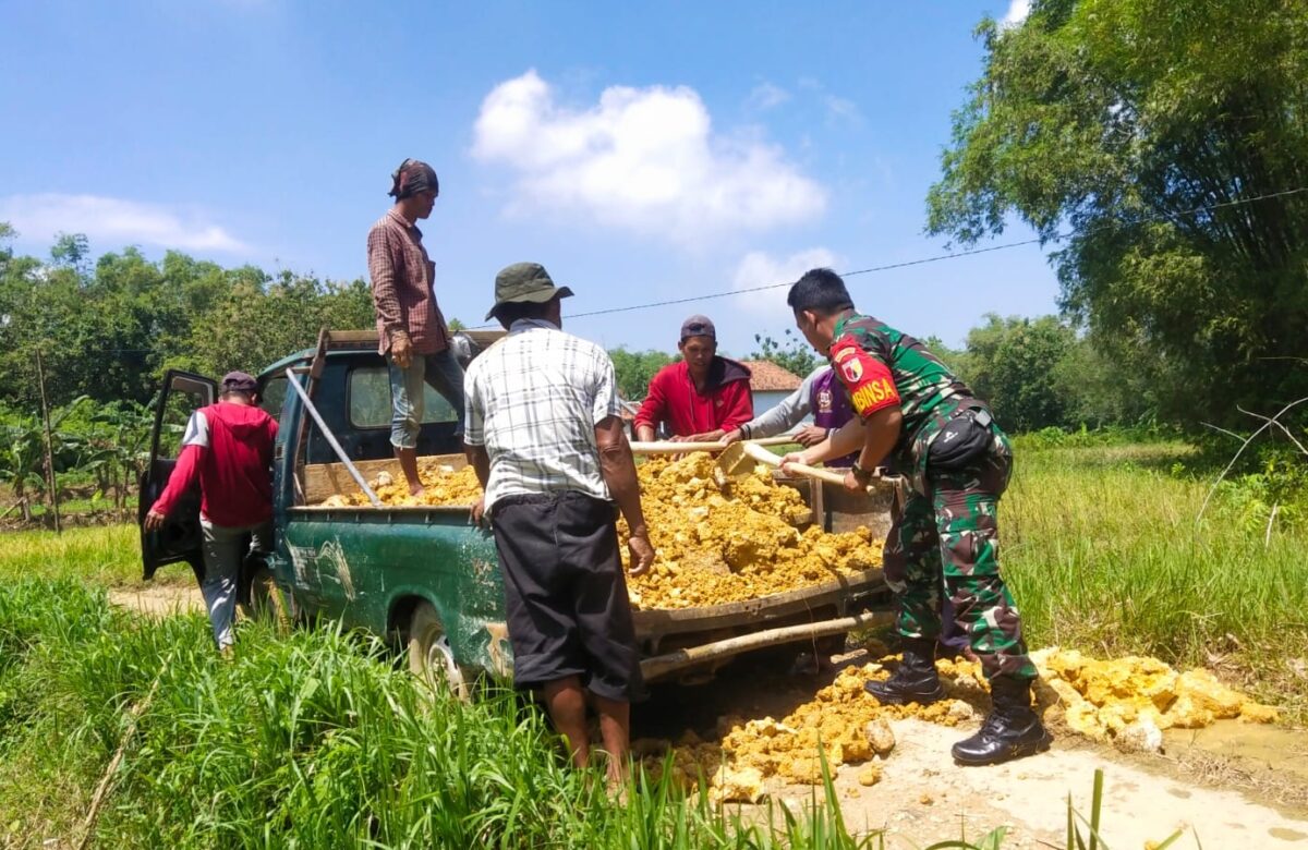 Babinsa Karang Penang dan Warga Kompak Timbun Jalan