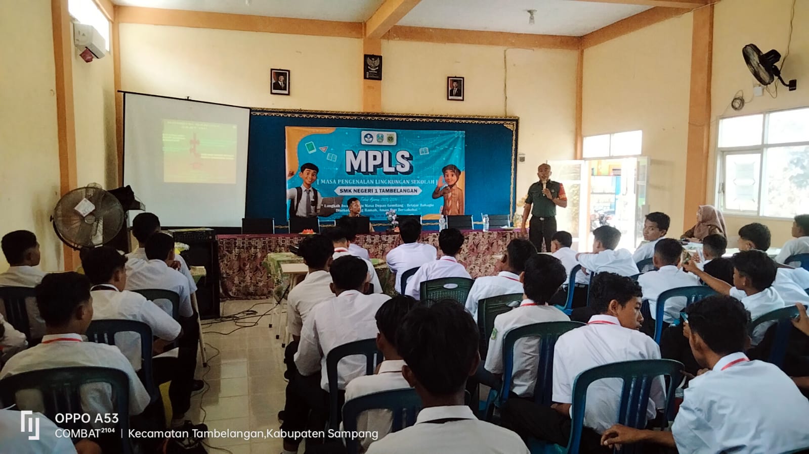 Babinsa Koramil 0828/11 Tambelangan, Serma Mustakim, hadir langsung untuk memberikan pembekalan kepada para siswa baru dalam nuansa MPLS rasa Bela Negara.
