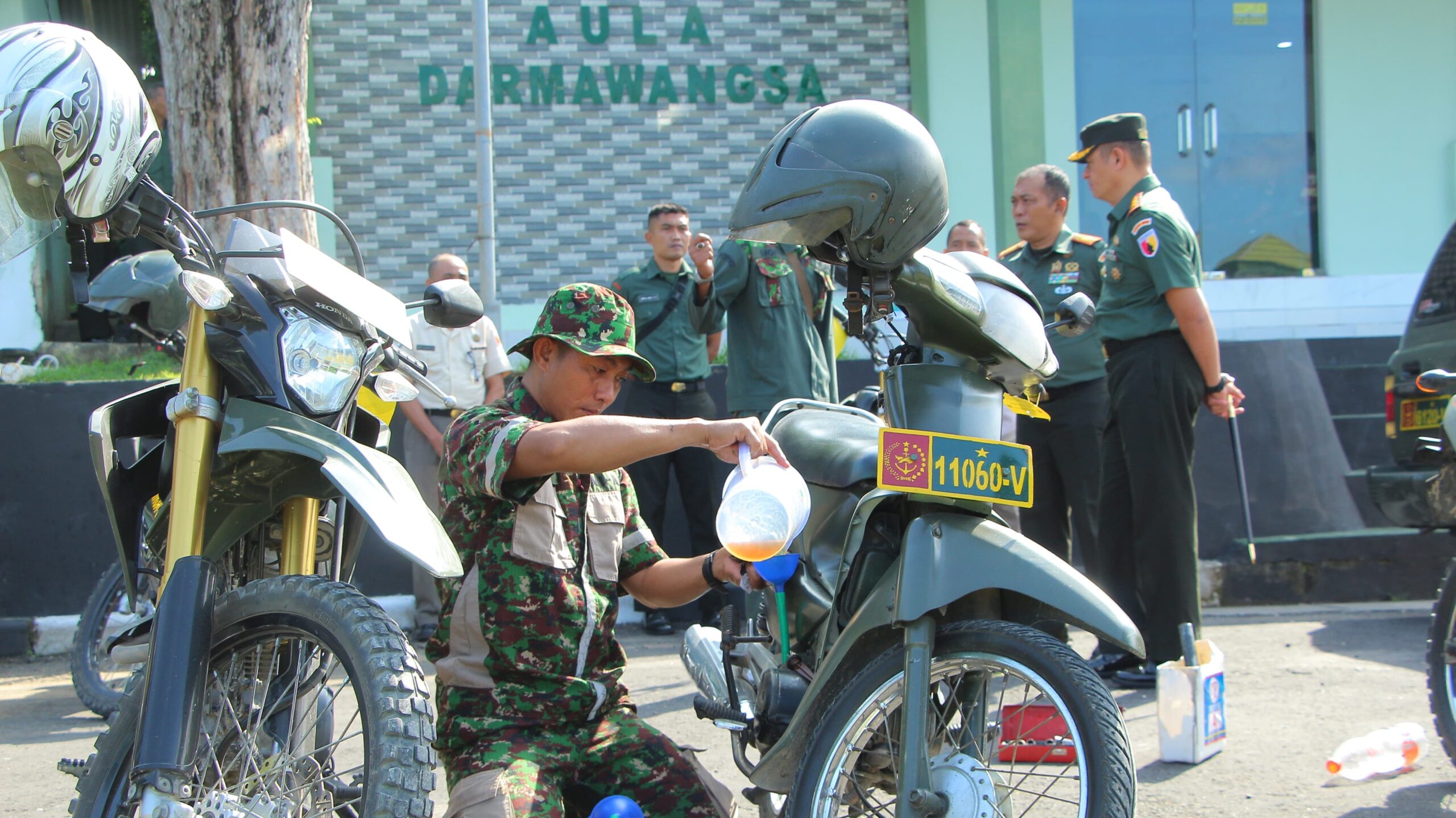 Kegiatan servis ini dilaksanakan oleh Tim Pemeliharaan (Har) dari Pamekasan, yang secara profesional dan teliti melakukan pengecekan serta pergantian oli sesuai standar perawatan berkala. Proses pemeliharaan ini meliputi kendaraan roda dua maupun roda empat yang digunakan untuk mendukung mobilitas jajaran Kodim dalam pelaksanaan tugas teritorial dan komando kewilayahan.