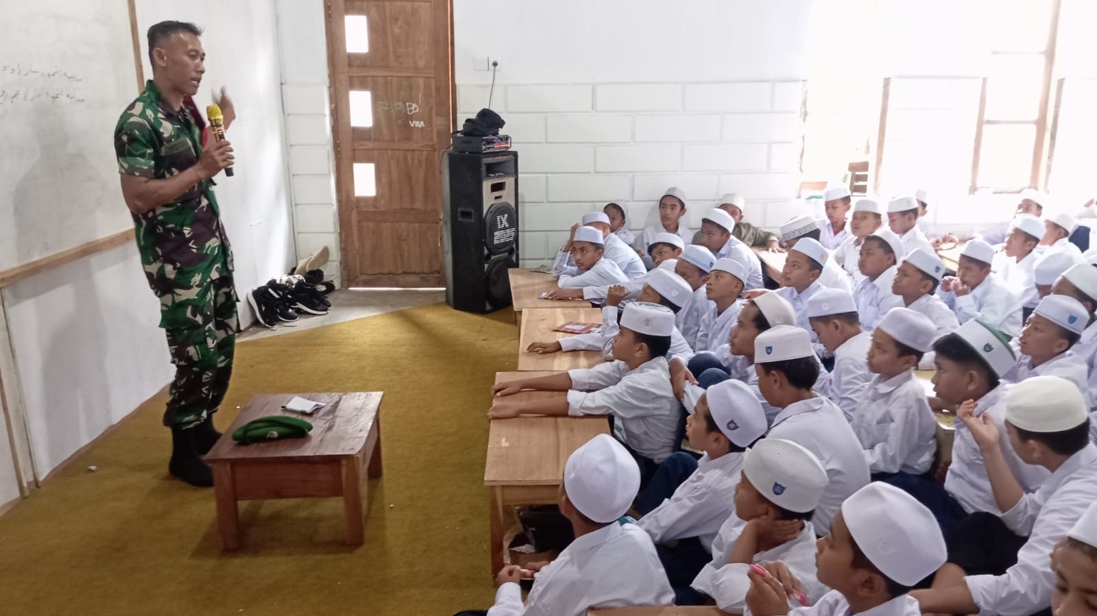 Sampang – Dalam rangka mendukung Babinsa Koramil 0828/09 Banyuates, Sertu Widodo, memberikan materi Wawasan Kebangsaan (Wasbang) kepada para siswa baru SMP Negeri 1 Banyuates, yang bertempat di Desa Nepa, Kecamatan Banyuates, Kabupaten Sampang