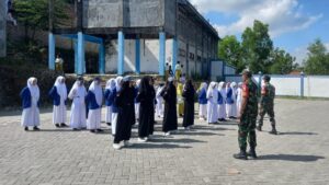 Sampang— Dalam upaya menanamkan kedisiplinan dan semangat kebangsaan kepada generasi muda, Babinsa Koramil 0828/12 Robatal, Sertu Heri Susilo dan Koptu Indra Saputra, melaksanakan kegiatan pelatihan Peraturan Baris Berbaris (PBB) bagi siswa-siswi MTs AZ-Zahrul Ulum. Kegiatan ini berlangsung di Dusun Arnih Barat, Desa Gunung Rancak, Kecamatan Robatal, Kabupaten Sampang.