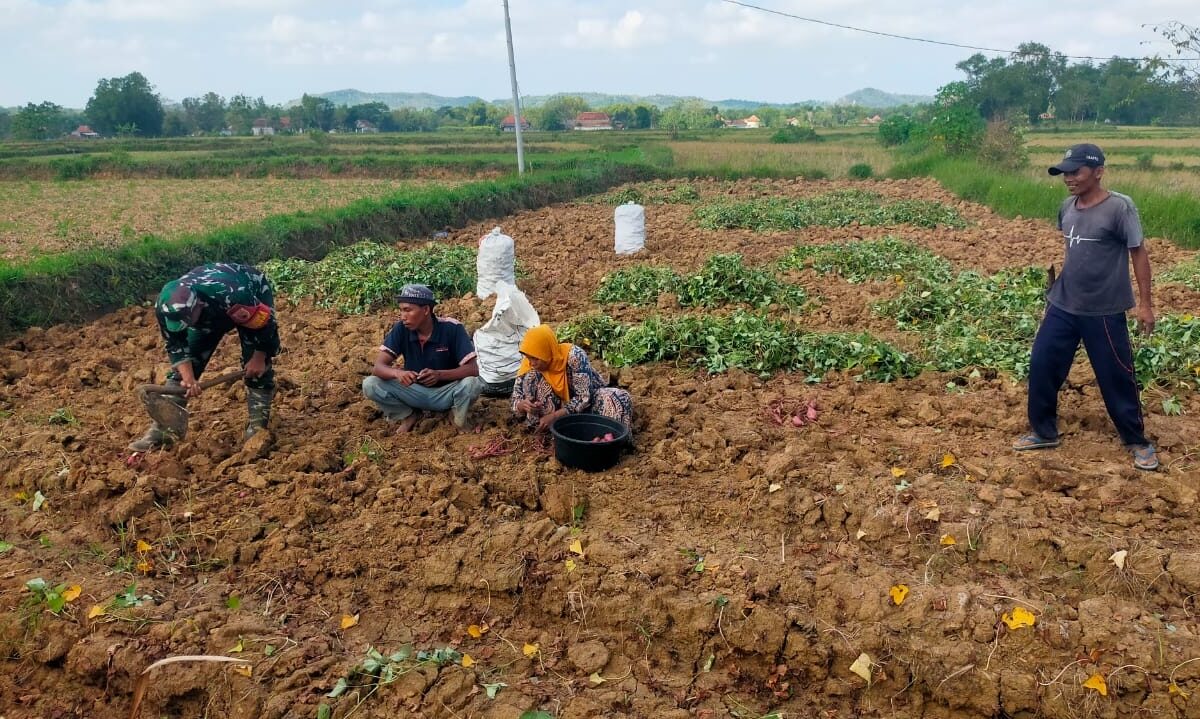Babinsa Kedungdung Bantu Panen Ubi Jalar, Bukti Nyata