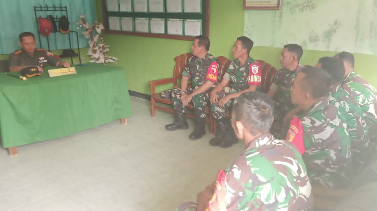 Sampang, 7 Agustus 2025 – Komandan Kodim 0828/Sampang, Letkol Czi Dika Catur Yanuar Anwar S.T, melaksanakan kunjungan kerja ke Markas Koramil 0828/05 Sreseh dalam rangka memberikan pengarahan kepada para Babinsa. Kegiatan ini bertujuan untuk memperkuat kedisiplinan prajurit, menghindari berbagai bentuk pelanggaran, serta mempertegas peran Babinsa dalam mendukung program ketahanan pangan nasional.