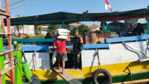 Babinsa Serma Mansur Kawal Distribusi Bantuan Beras Nasional di Pulau Mandangin