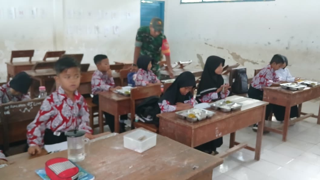 Babinsa Ketapang Dampingi Distribusi Makanan Gizi Gratis di