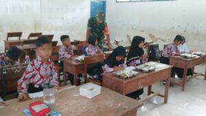 Babinsa Ketapang Dampingi Distribusi Makanan Gizi Gratis di SDN 2 Ketapang Timur