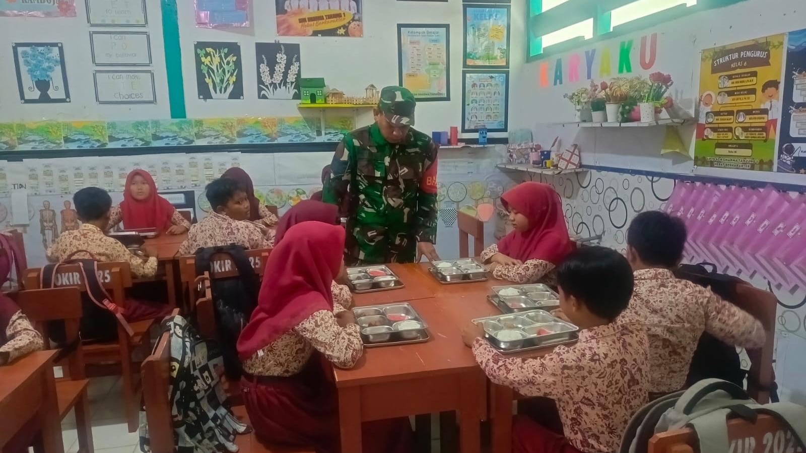 Sampang – Dalam upaya meningkatkan gizi dan kesehatan anak-anak usia sekolah, Babinsa Koramil 0828/02 Camplong, Serka Gunawan, turut serta mendampingi kegiatan penyaluran Makan Bergizi Gratis (MBG) kepada para siswa SDN di Desa Tambaan, Kecamatan Camplong, Kabupaten Sampang.