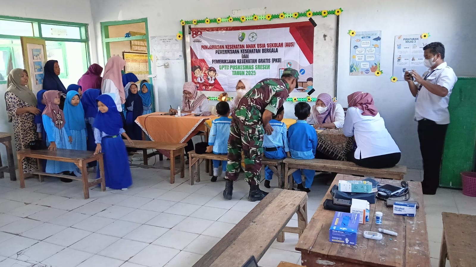Sreseh – Wujud nyata kepedulian terhadap kesehatan masyarakat terus ditunjukkan oleh aparat TNI di wilayah. Babinsa Koramil 0828-05/Sreseh, Serka Dwi, turut serta dalam kegiatan Pendampingan Pemeriksaan Kesehatan Gratis (PKG) yang diselenggarakan oleh Tim Puskesmas Sreseh, bertempat di MI Miftahul Ulum, Desa Bundah, Kecamatan Sreseh, Kabupaten Sampang.