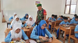 Banyuates –Dalam upaya mendukung peningkatan gizi anak-anak sekolah dan menumbuhkan generasi sehat serta cerdas, Babinsa Koramil 0828/09 Banyuates, Serda Gede, melaksanakan kegiatan pendampingan penyaluran Makanan Bergizi Gratis (MBG) kepada para siswa di Desa Masaran, Kecamatan Banyuates, Kabupaten Sampang, pada hari ini.