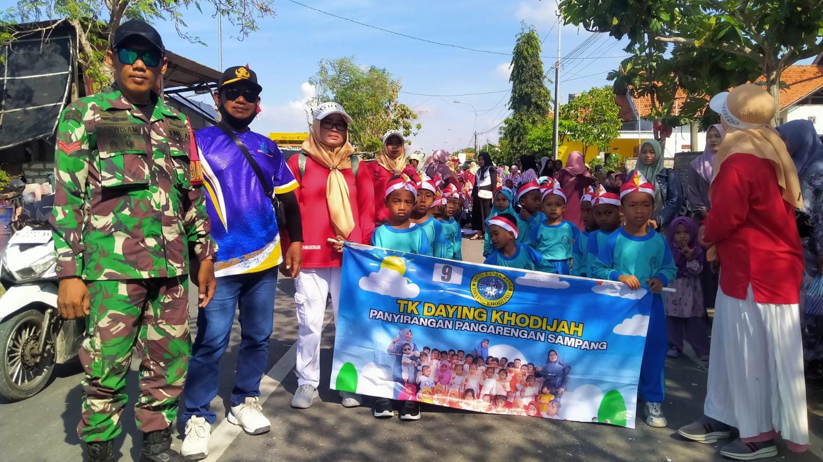 Sampang — Dalam semangat memperingati Hari Ulang Tahun Kemerdekaan Republik Indonesia ke-80, Babinsa Posramil 0828/13 Pangarengan, Koptu Darwis Amiruddin, melaksanakan tugas pengamanan kegiatan Kirab Merah Putih tingkat Taman Kanak-Kanak se-Kecamatan Pangarengan.