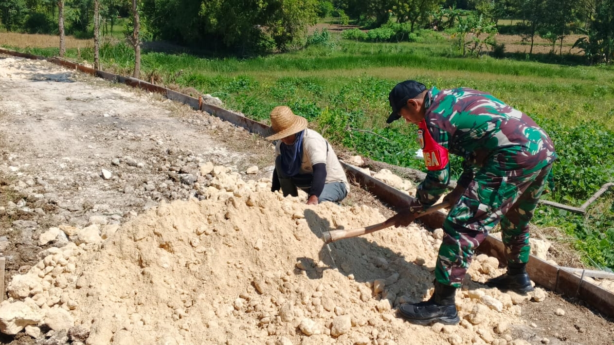 Sampang – Wujud nyata kepedulian terhadap kesejahteraan masyarakat desa, Babinsa Posramil 0828/13 Pangarengan, Koptu Darwis Amirudin, turut serta dalam karya bakti perbaikan jalan desa yang menjadi akses utama pertanian di Desa Pacanggaan, Kecamatan Pangarengan, Kabupaten Sampang.